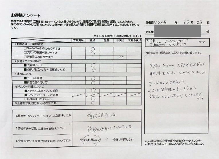 フードロスの対応でのこった料理のふくろづめも対応してくれたのでとてもよかったです