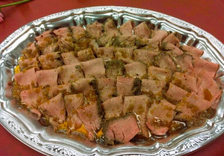 テーブルには、ジューシーに仕上げたローストビーフをはじめ、彩り豊かな温製料理や前菜が並び、パーティーが始まると多くのお客様が料理を手に取りながら会話を楽しまれていました。特にローストビーフはボリューム感もあり、皆様から人気の一品となっていました。