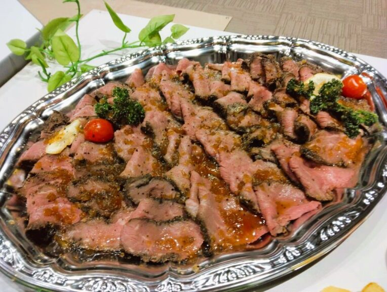 自家製ローストビーフの厚切りカット:ジューシーな旨味が凝縮されたお肉をたっぷり。