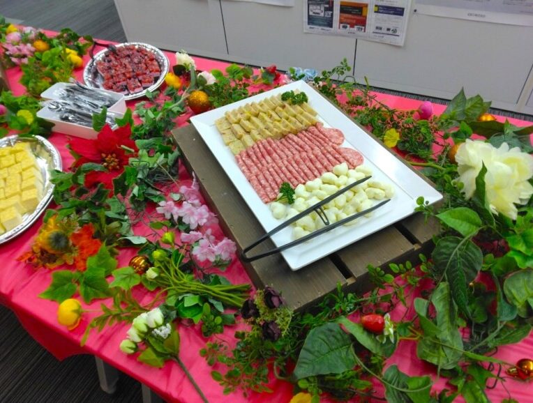 当日は、赤のテーブルクロスを基調とした、高級感あふれる会場装飾を施しました。